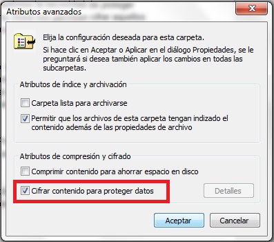 Haz clic derecho sobre la carpeta que deseas cifrar y selecciona Propiedades. Accederás a las configuraciones avanzadas, donde debes seleccionar Cifrar contenido para proteger datos. Nada más tenemos que confirmar y estará terminado el proceso.