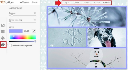Al pasar el cursor sobre cada foto, podrás eliminarla del collage haciendo clic en la cruz de la parte superior derecha o reacomodarla. Una vez que hayas ubicado todas las imágenes, podrás agregar colores o transparencias de fondo: