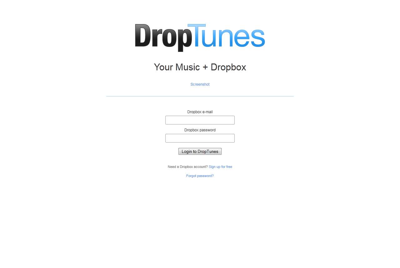 Para disfrutar por completo de la experiencia, será necesario tener instalado la última versión de los navegadores actuales, dado que DropTunes se basa en HTML 5. Los formatos soportados son MP3, M4A, OGA y WAV. El único requisito es tener una cuenta de DropBox con la cual identificarse y, al momento de ingresar, aparecerá la lista de canciones existentes en la cuenta.