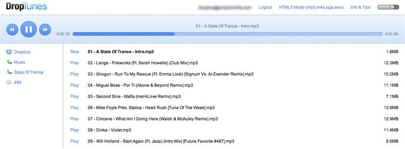 En los últimos tiempos, las aplicaciones web nos sorprenden cada vez más, a medida que se agregan nuevas posibilidades de disfrutar y trabajar exclusivamente a través de Internet. Esto es posible gracias a todos los servicios que ofrecen las compañías. En esta ocasión, el famoso servicio de almacenamiento, DropBox, nos trae un increíble reproductor web para escuchar la música que almacenamos en nuestras cuentas: DropTunes.