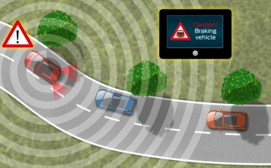Luz de freno electrónica es un nuevo dispositivo presentado por Ford. Cada vez que el automóvil frena, transmite una señal inalámbrica al resto de los autos que se encuentran cerca. El tablero de los otros conductores se ilumina, advirtiendo lo que sucede en los próximos metros. Ellos podrán saber que frenamos aunque hayamos doblado una esquina o, no tengan visibilidad porque circulen detrás de un camión u otro vehículo grande.