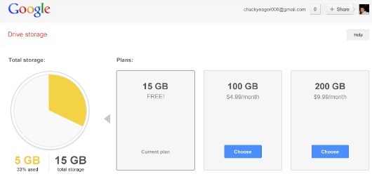 Google nos brinda 15GB de almacenamiento para Drive, Gmail y Google+