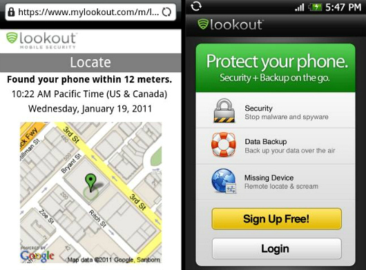 Instala Lookout en tu equipo y crea una cuenta en mylookout.com. Si pierdes tu Android, podrás ingresar a dicha cuenta desde cualquier computadora y solicitar que el programa encuentre tu celular. Lookout te mostrará un mapa de Google con la ubicación exacta del equipo perdido para que puedas recuperarlo. Si lo perdiste en un lugar público y no lo encuentras, puedes activar una alarma sonora que te ayudará a ubicarlo.