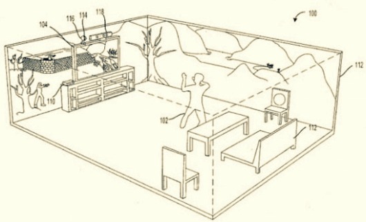 Microsoft acaba de patentar una tecnología que proyecta imágenes del videojuego en las paredes de una habitación y la convierte en un gran campo de acción. Es un prototipo que extiende los gráficos fuera de la pantalla del televisor; innovación que podría ofrecer nuevas experiencias de juego, como el permitir al jugador «girarse y observar al enemigo colocándose detrás de él«.