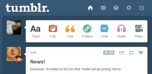 Tumblr es uno de los sitios de microblogging de mayor popularidad entre diseñadores, fotógrafos y amantes del arte y del blogueo simple y rápido. Sus usuarios pueden compartir mensajes breves, citas o simplemente fotos y videos; es mucho más fácil de utilizar que WordPress o Blogger y también se puede seguir las publicaciones de otras personas. ¿Por qué Yahoo! pagó semejante cantidad de dinero por la plataforma? Quizás por sus 300 millones de visitantes únicos al mes y los 13 millones de dólares que ganó en 2012.