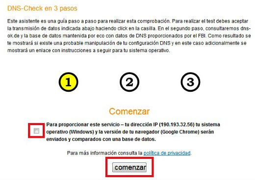 Al darse de baja esos servidores, aquellos equipos que aún estén infectados por el DNSChanger se quedarán sin internet, ya que intentarán conectar a servidores que ya no funcionan. Para saber si tu equipo es uno de ellos, sigue el enlace que se encuentra debajo y en sólo dos pasos podrás saber si tu computadora posee el virus. Si es así, deberás limpiar el sistema para poder volver a usar Internet.