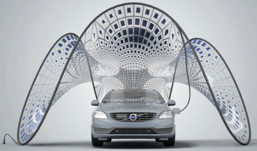 Volvo y el estudio Synthesis Design + Architecture presentaron un concepto de coche que puede cargar energía en cualquier sitio donde haya sol, mediante un enorme panel solar que se dobla y almacena en el baúl del automóvil. En las imágenes, el panel aparece montado sobre el modelo híbrido V60. Se utilizaron herramientas digitales para realizar el diseño y modelos físicos para probar estructuras que puedan soportar los paneles solares.
