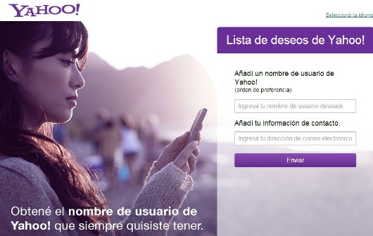 Para conseguirlo, debes acceder a la lista donde los usuarios anotan los nombres que desean usar. Podrás incluir hasta 5 nombres y si la compañía encuentra que no es posible asignarte tu primera opción, probará con los cuatro restantes. A mediados de agosto, Yahoo! te avisará los nombres de tu lista disponibles para que selecciones tu favorito.